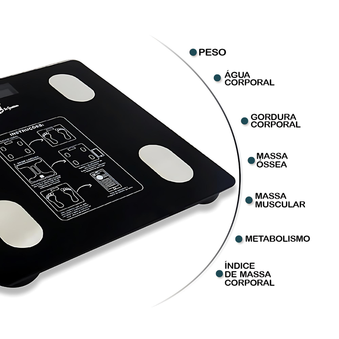 Mais do que uma balança comum, ela oferece medições avançadas e detalhadas para quem deseja atingir seus objetivos de forma precisa, prática e inteligente.