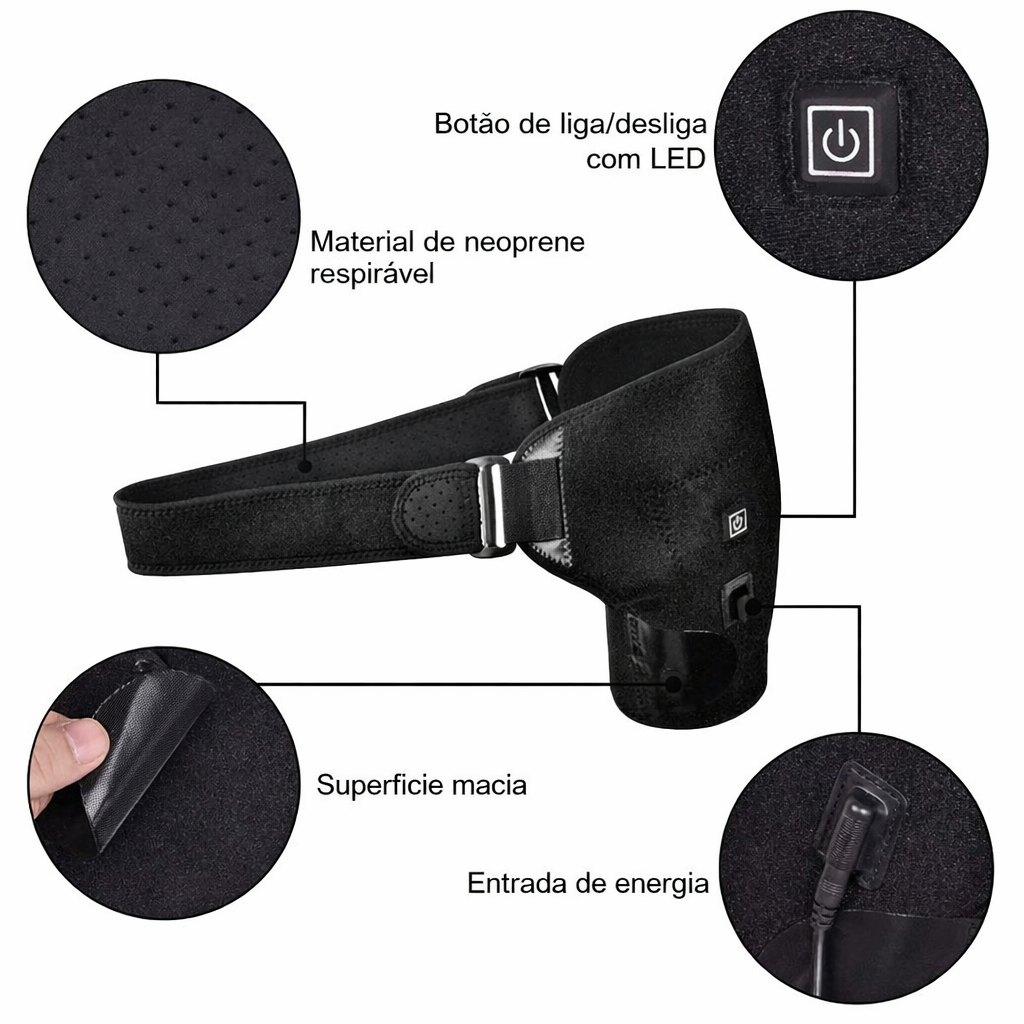 ✅ Ajuda no alívio de dores e tensões no ombro ✅ Relaxa músculos e melhora a circulação ✅ Possui 3 níveis de temperatura ajustáveis ✅ Uso confortável com material em neoprene ✅ Pode ser usada no ombro direito ou esquerdo ✅ Unissex e tamanho único ajustável ✅ Alimentação prática via USB (bivolt)