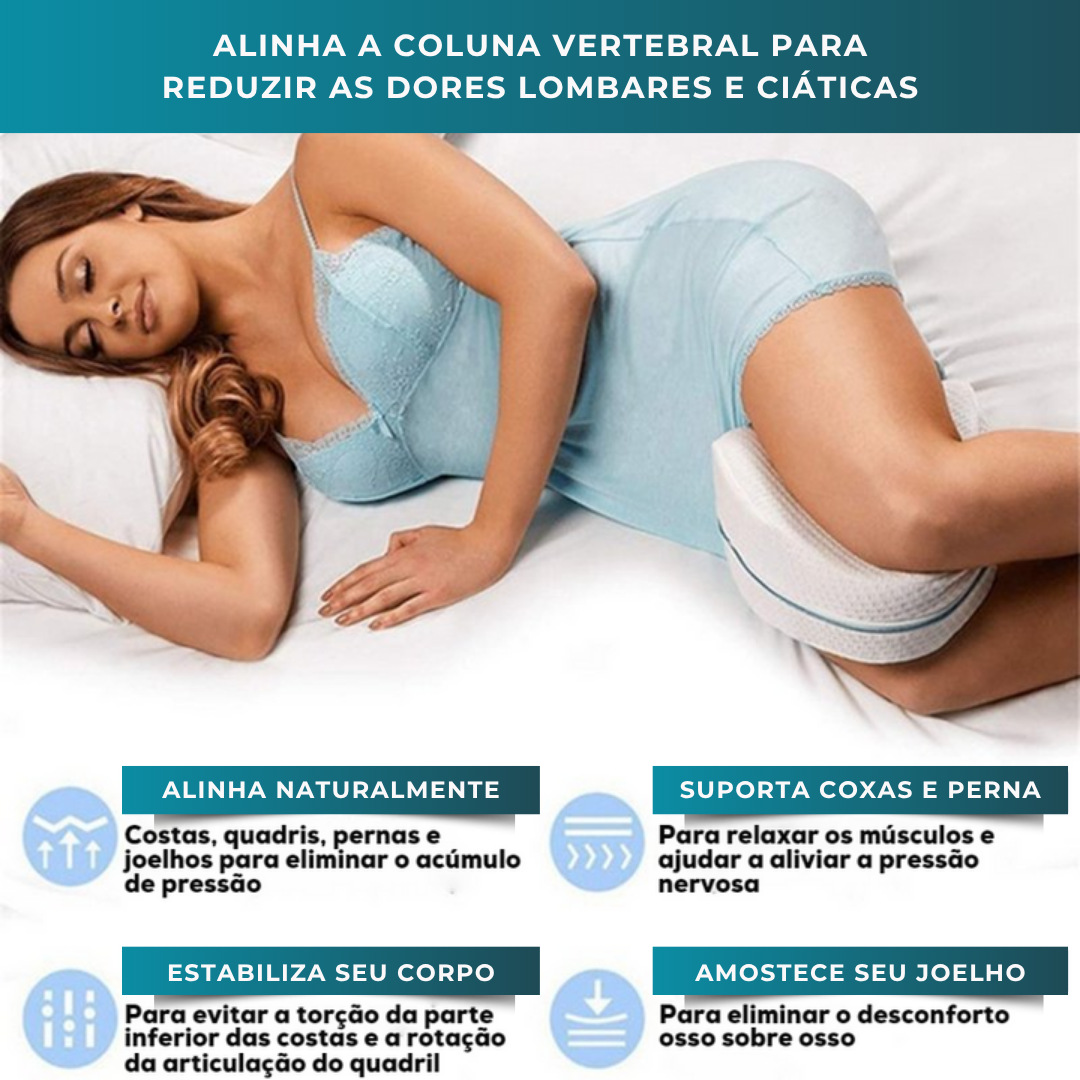 A ComfortCurve é a aliada perfeita para quem dorme de lado e sofre com dores nas costas, nos quadris ou no nervo ciático. Com design ergonômico, espuma viscoelástica e alça de suporte, ela mantém sua coluna no alinhamento ideal durante toda a noite — mesmo que você se mexa.
