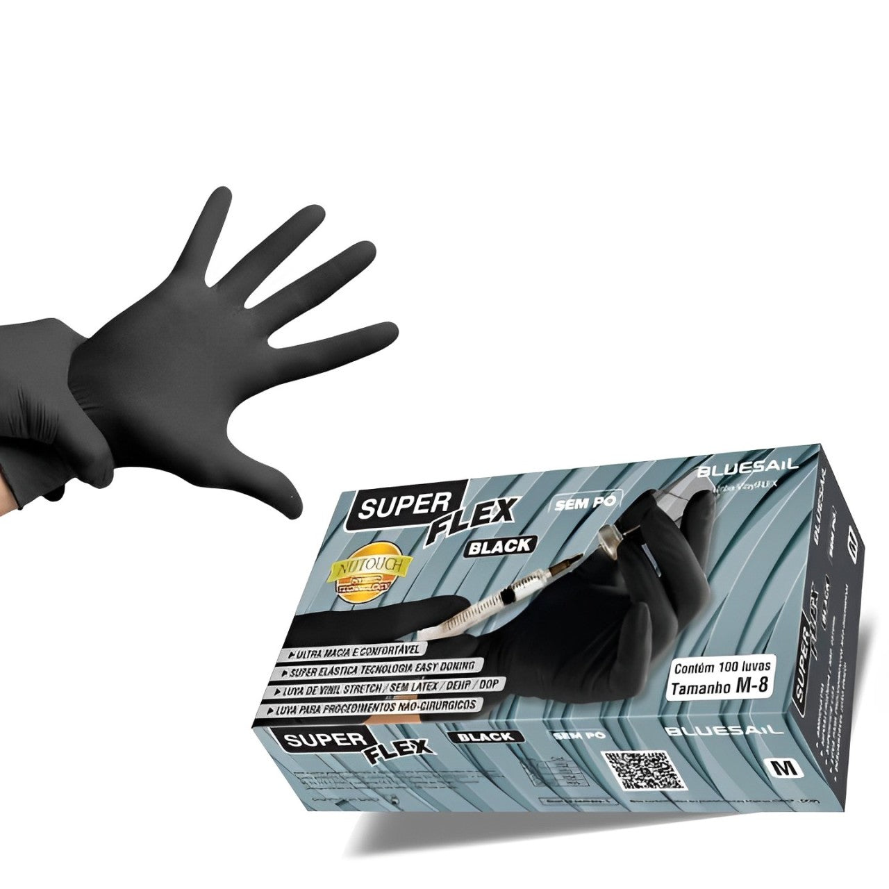 • Caixa com 100 unidades de luva Vinil PRETA, sem pó.