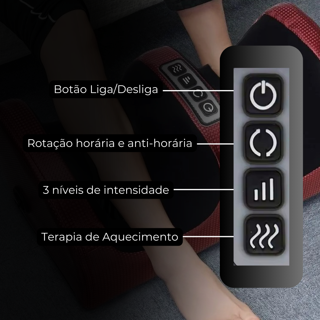 O Massageador de Pés ThermoZen foi desenvolvido para cuidar de seus pés, panturrilhas e tornozelos, ajudando a aliviar dores musculares, melhorar a circulação sanguínea e reduzir o estresse acumulado. Com um design portátil e controle fácil, você pode ajustar a massagem conforme suas necessidades!