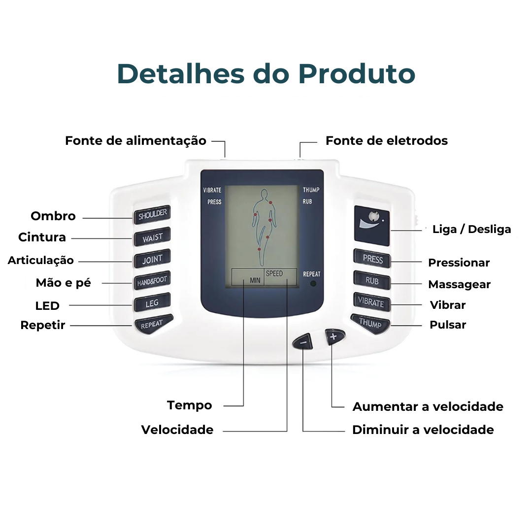 - Alívio rápido da dor - Trata várias partes do corpo - Sensação de massagem manual