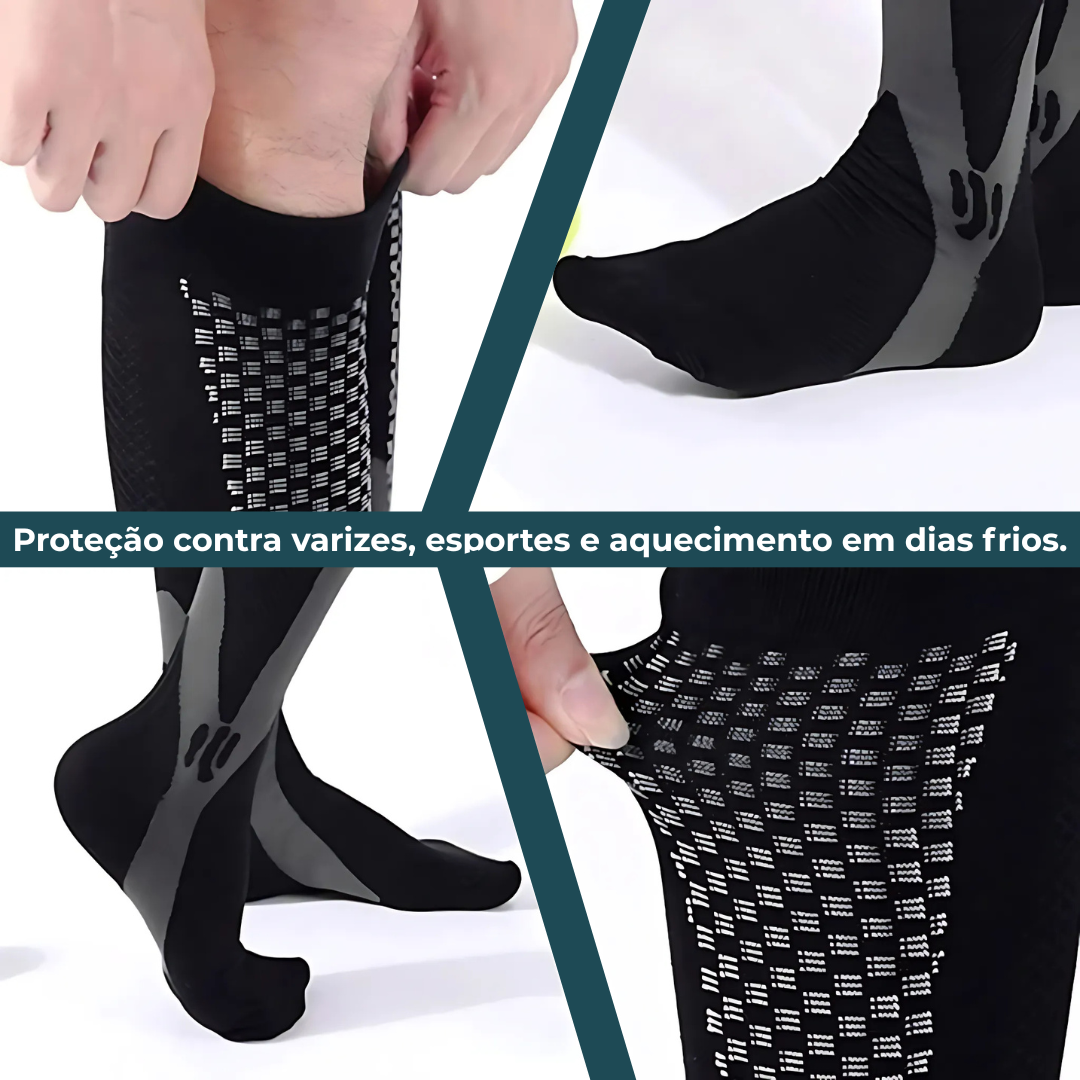 Proteção contra varizes, performance nos treinos e aquecimento nos dias frios — tudo em uma só meia.