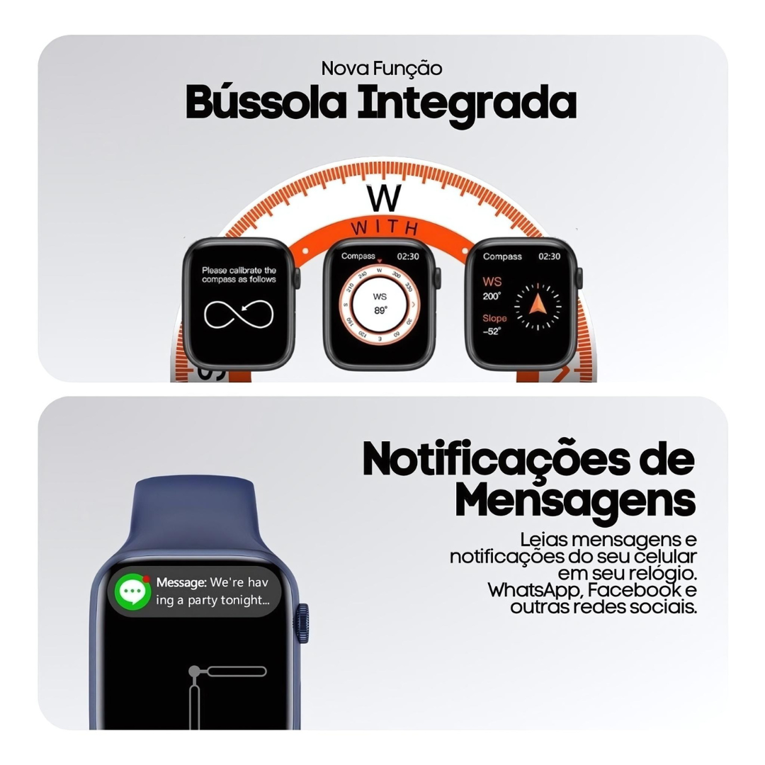Imagine ter todos os recursos de que você precisa ao alcance de um toque. Com o Smartwatch Watch 9 W29s, você ganha o controle total da sua saúde e bem-estar, sem abrir mão de estilo e elegância - é a ferramenta que acompanha o seu ritmo, 24 horas por dia.